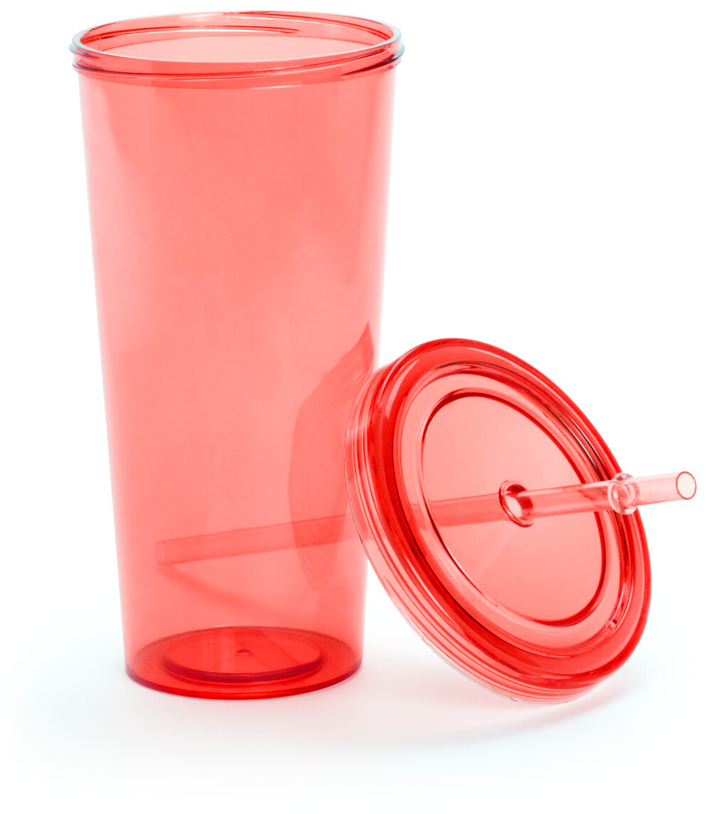Barevný, průhledný plastový kelímek s brčkem, 750 ml.