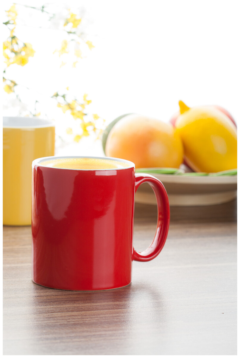 Barevný keramický hrnek, uvnitř bílý, 300 ml.