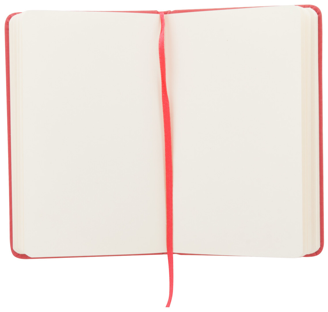 Poznámkový blok se 100 čistými listy, záložkou a gumičkou. Velikost A6.