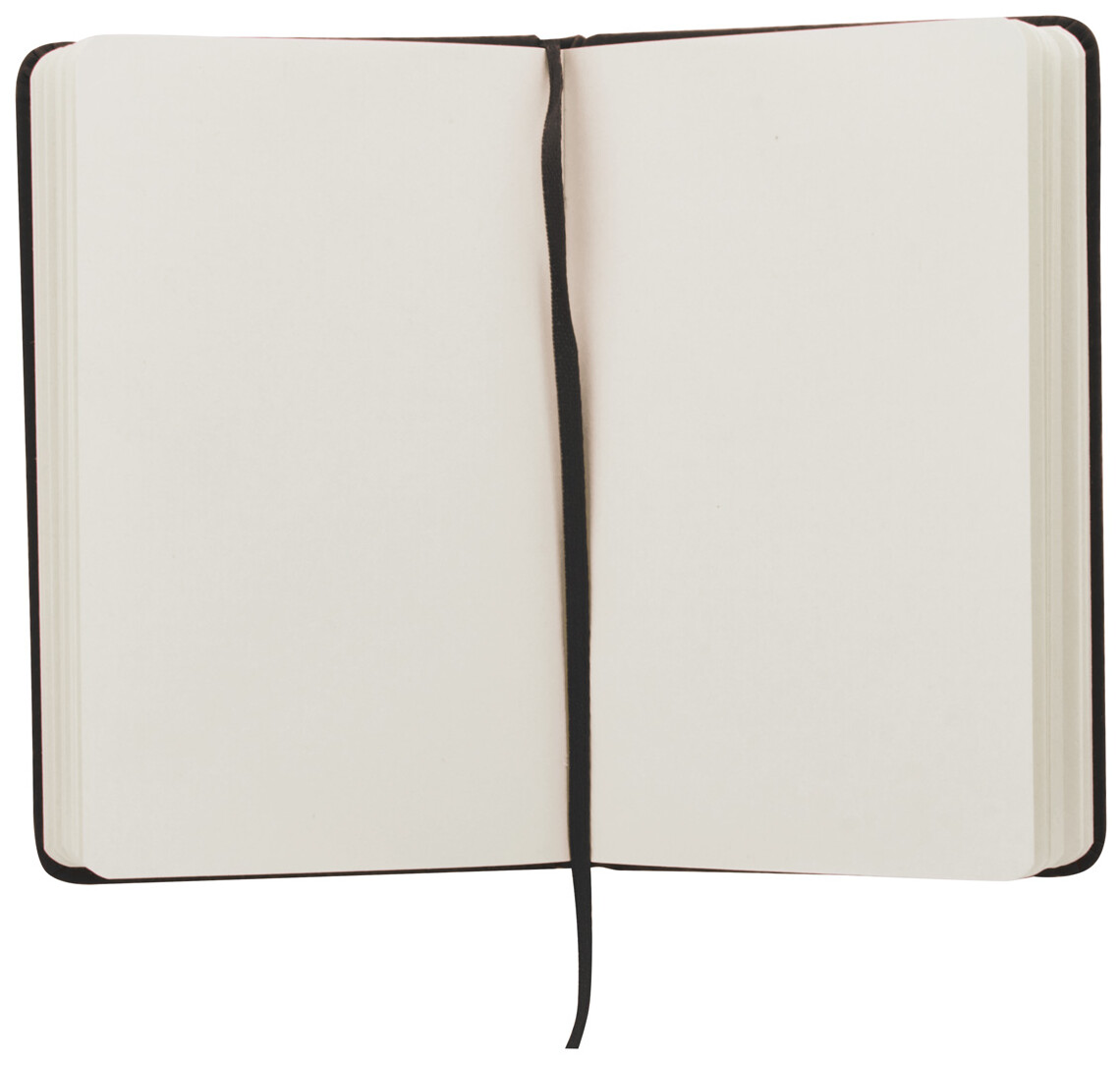 Poznámkový blok se 100 čistými listy, záložkou a gumičkou. Velikost A6.