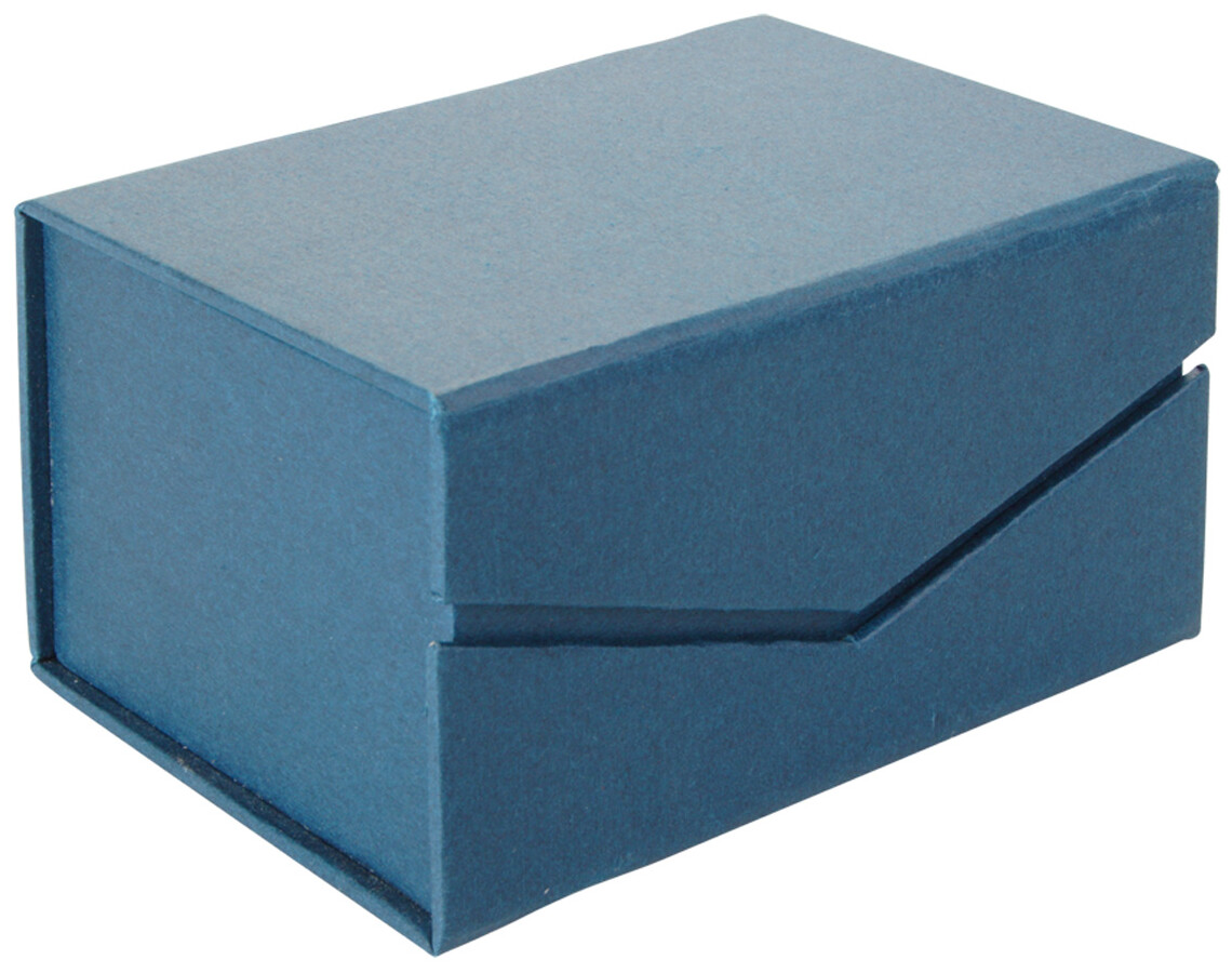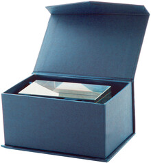 Skleněná krychle. V magnetické tmavě modré dárkové krabičce.