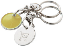 Kovový přívěšek na klíče se žetonem do nákupního košíku. Jedna strana mince je barevná, na druhé je vyražen nákupní vozík. Velikost: ø23×1,7 mm.