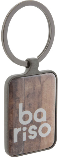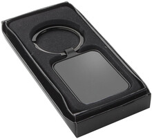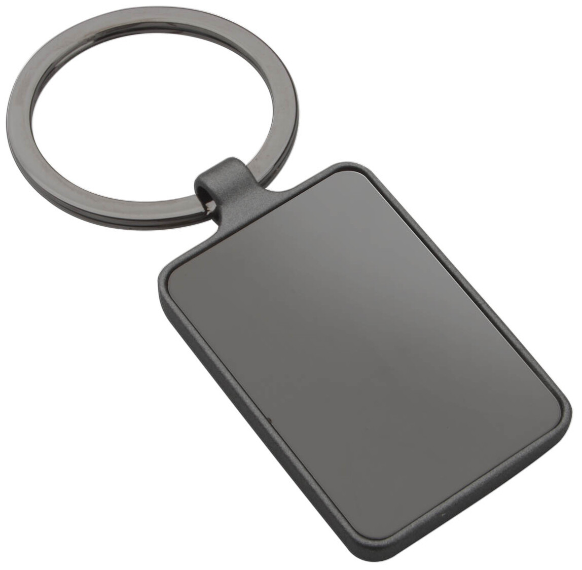 Obdélníkový přívěšek na klíče v barvě gun metal s oboustranným lesklým povrchem.