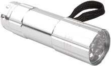 Hliníková baterka s 9ti LED diodami s páskem kolem ruky. Včetně 3 AAA baterií.