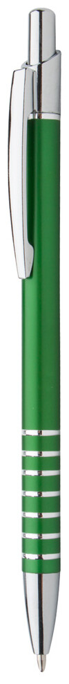 Hliníkové kuličkové pero s kovovým klipem a chromovanou špičkou a vrškem. Dodává se s modrou náplní.