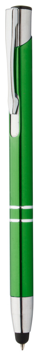 Hliníkové kuličkové pero s dotykovým koncem a modrou náplní.