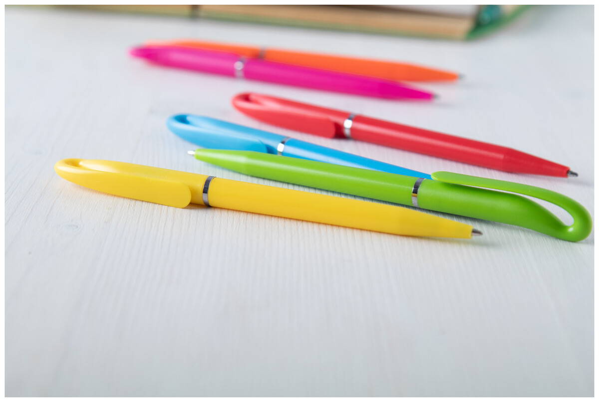 Plastové kuličkové pero s modrou náplní.
