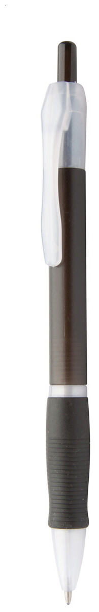 Plastové kuličkové pero s pogumovaným gripem a s modrou náplní.