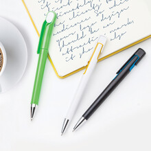 Plastové kuličkové pero s barevným zdobením a chromovaným hrotem. S modrou náplní.