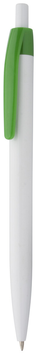 Plastové kuličkové pero s bílým tělem a barevným klipem, s modrou náplní.