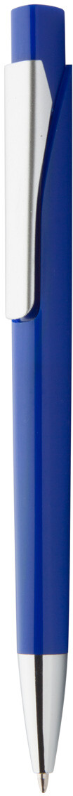 Plastové kuličkové pero se stříbrným klipem a chromovou špičkou, s modrou náplní.