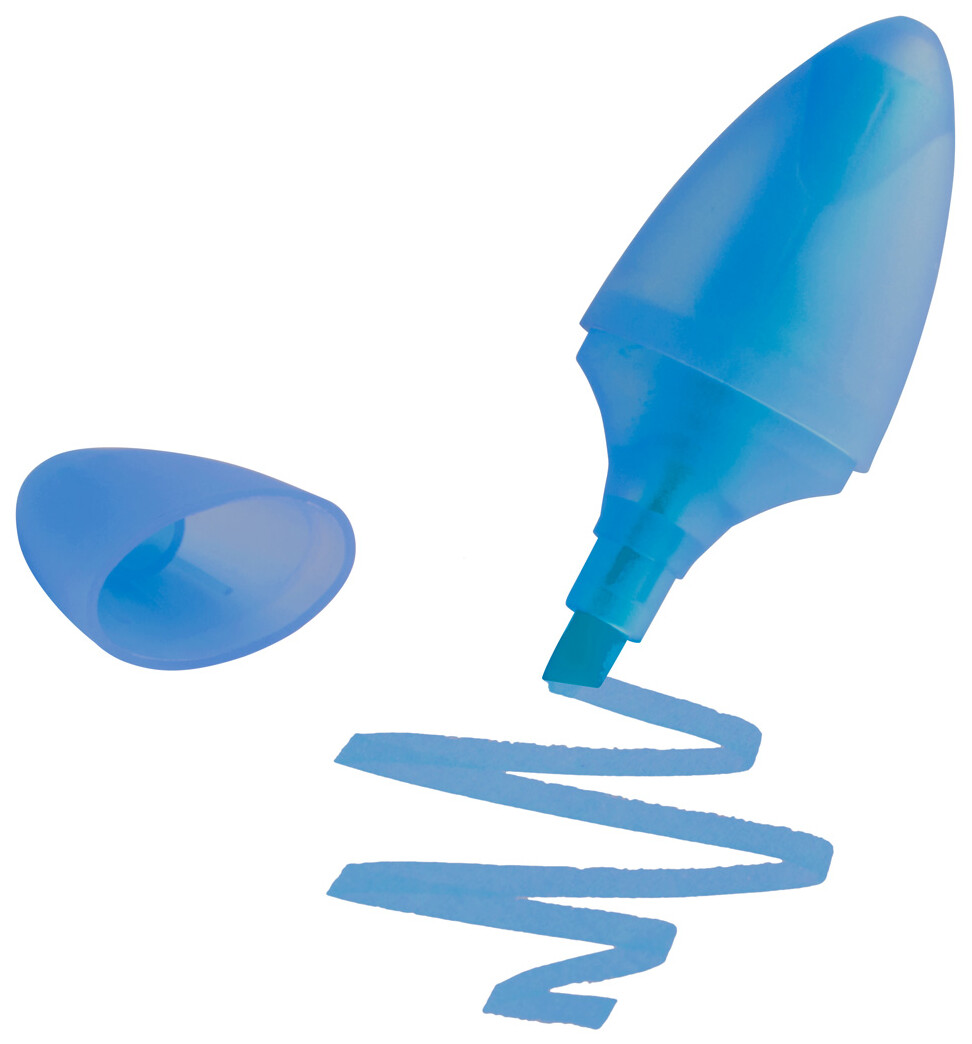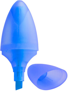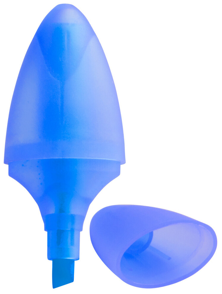 Zvýrazňovač ve tvaru kapsle v průsvitném plastovém obalu.