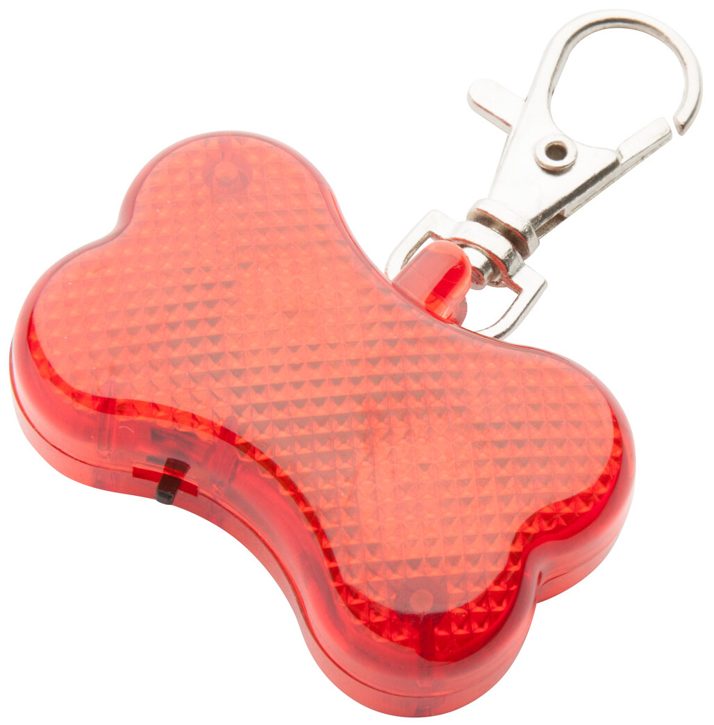 Bezpečnostní blikající LED světlo pro zvířata ve tvaru kosti, vč. knoflíkové baterie.