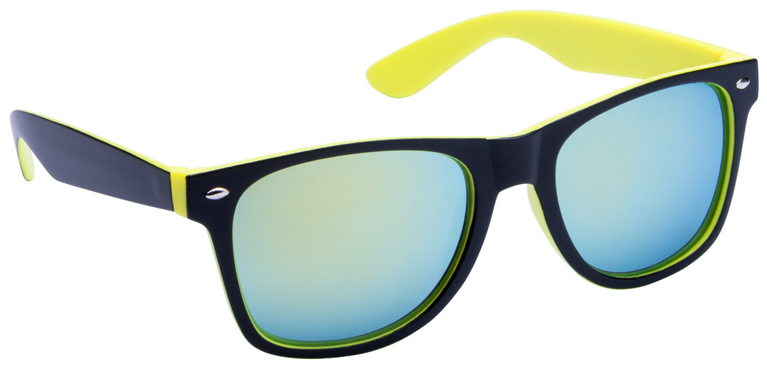 Plastové sluneční brýle s dvoubarevným rámem, zrcadlovými skly a ochranou proti UV 400.