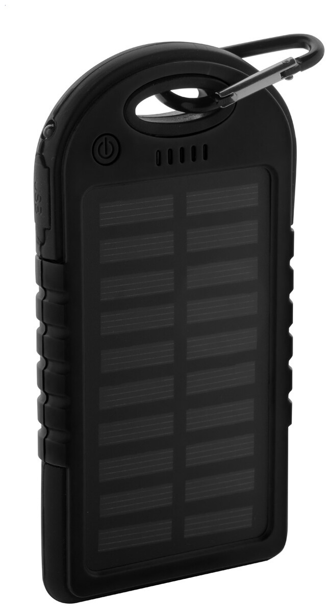 Plast/silikonová power banka s 4000 mAh baterií, solárním nabíjením a 1 LED diodou. Dodáváno vč. USB mikro kabelu.