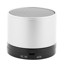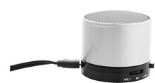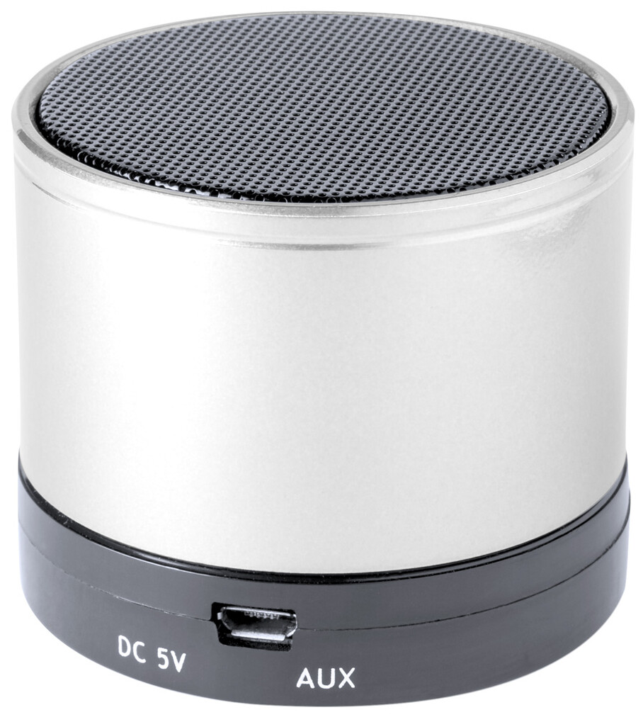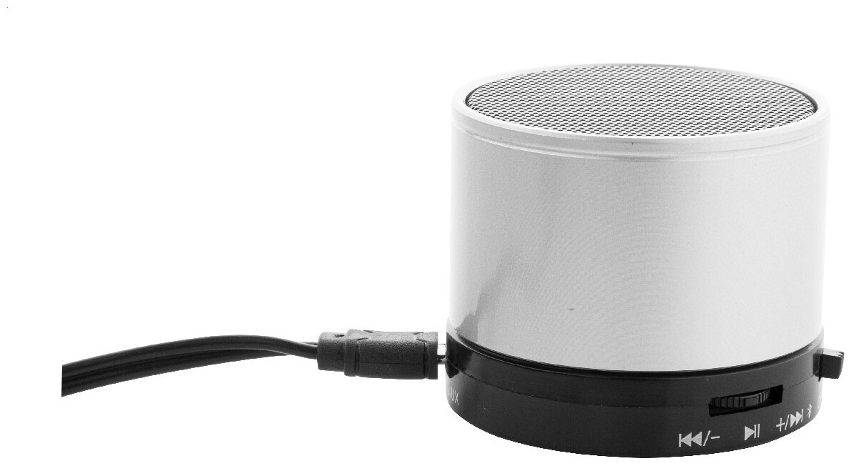Bezdrátový reproduktor s kovovým krytem. S rádiem, přehrávačem MP3, funkcí handsfree a vestavěnou dobíjecí baterií. Včetně USB nabíječky a aux-in kabelu.