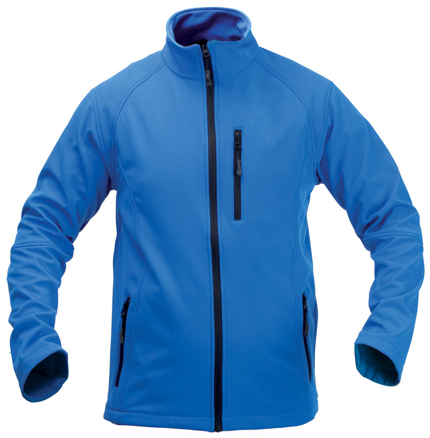 Softshellová bunda na zip, 94% polyester / 6% elastan se 3 kapsami. Prodyšná a voděodolná, 300 g/m2.