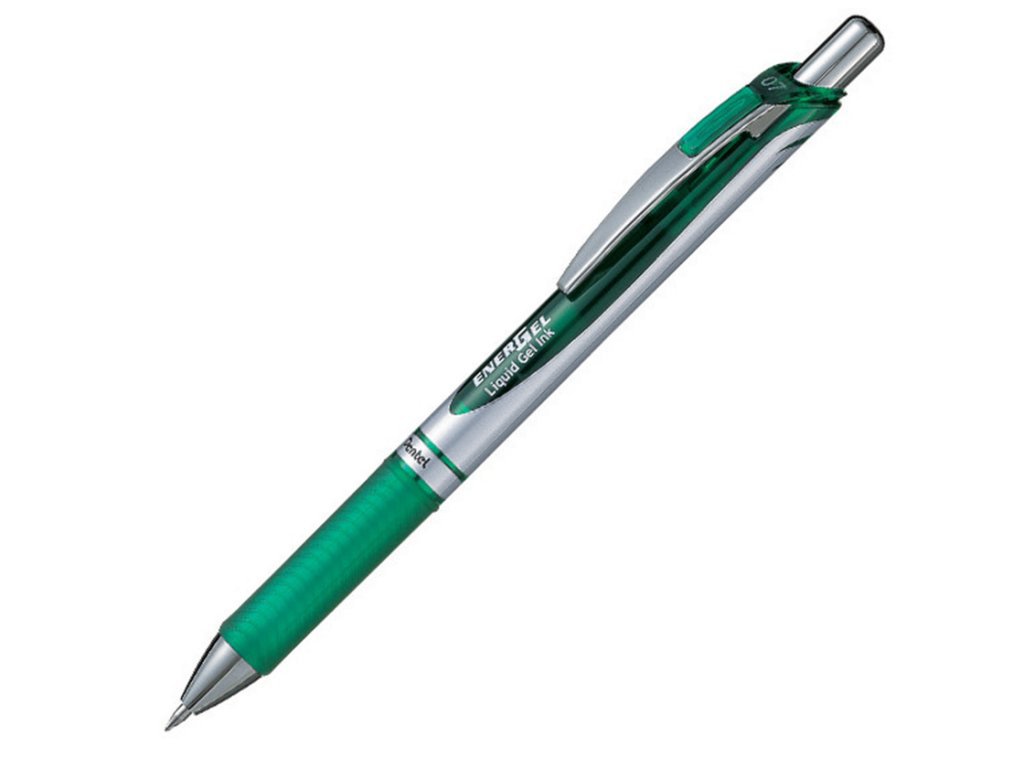 Gelové pero s unikátní gelovou náplní EnerGel. Vyměnitelná náplň LR7. Mačkací mechanismus a pogumovaný úchop, který neklouže a zajišťuje pevné a příjemné držení. Odolný niklový hrot a kvalitní plastové tělo. Barva těla pera je shodná s barvou náplně. Široký výběr barev. Barva: zelená. Vysoce výkonná rychleschnoucí inkoustová technologie, která se nemaže, neteče a je vhodná pro leváky. Průměr kuličky hrotu 0,7 mm, šíře stopy 0,5 mm.