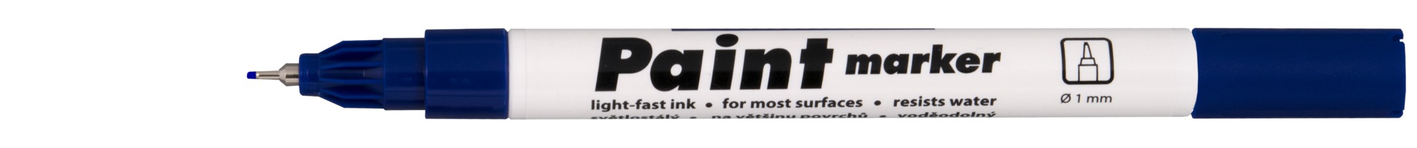 Lakový popisovač vhodný pro označování diapozitivů, rentgenových snímků, gumy, kabelů, kovů, CD, DVD a BD disků, keramiky, skla, fólií, plastů apod. Stopa písma je světlostálá, odolává vodě i při bodu varu, teplotě do 100 °C, otěru i povětrnostním vlivům. Šíře stopy cca 0,7 mm. Přepouštěcí mechanismus. Neobsahuje xylen.