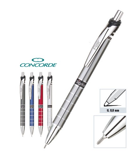Kuličkové pero, které dobře propisuje (mikrohrot 0,6 mm). Píše lehce a rychle díky speciální technologii Slide-O-Matic a náplni se substancí podobné gelu. Délka pera jen 128 mm. Kovový klip. Dodávané v mixu kovových barev těla. Náplň CONCORDE VELOCITY, modrá.