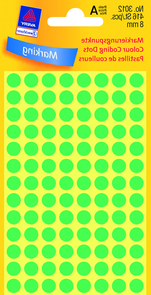 | 1707615 | ETIKETY Avery Zweckform označ. kolečka O 8 mm, zelená, 416 ks | 18,00 Kč | 21,78 Kč | 1 bal | |||