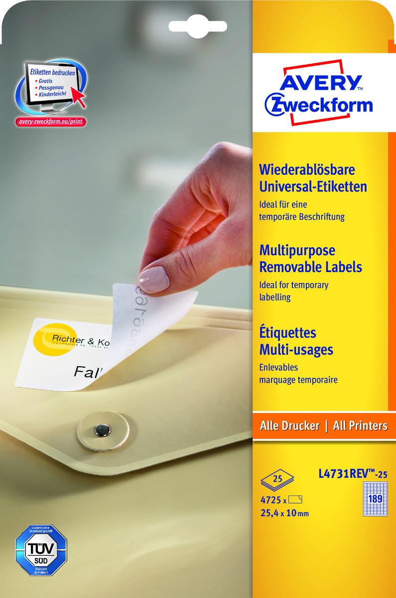 ETIKETY Avery Zweckform odnímatelné 25,4x10/25l, 189