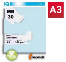Barevný papír IQ MB30, A3, 160g, pastelová středně modrá, 1 balení, 250 listů. Papír velkého formátu A3.