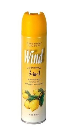 Osvěžovač vzduchu ve spreji Wind, citron, 300 ml Účinný osvěžovač vzduchu s citrusovou vůní, který rychle neutralizuje pachy a zanechá příjemnou svěží atmosféru v místnosti.