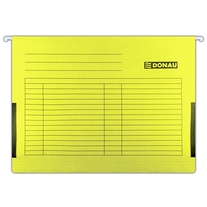 Závěsné desky do kartotéky na dokumenty formátu A4 s praktickou rychlovazací sponou a bočními záložkami, které fixují dokumenty uvnitř složky. Vyrobeny z barevného kartonu (gramáž: 230 g/m2), uvnitř pevná kovová lišta pro dlouhou životnost slohy. Snadný popis pomocí pohyblivých plastových indexů s výměnným štítkem. V balení 25 ks. Barva: žlutá.
