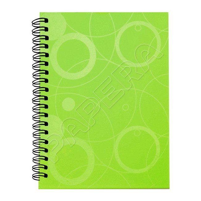 Kroužkový blok, desky PP, 70 listů s linkami a potiskem, papír 70 g, perforace, dvojitá Twin wire spirála. Formát: A5, barva: zelená.