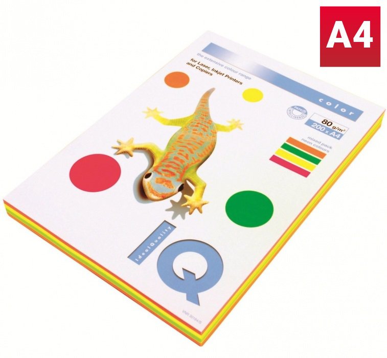 IQ COLOR MIX NEON.BAREV A4/80g/200l, NEOOR, NEOGN, NEOGB, NEOPI
