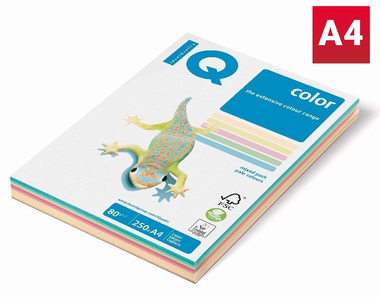 IQ COLOR MIX PASTEL.BAREV A4/80g/250l, CR20, YE23, PI25, MG28, MB30