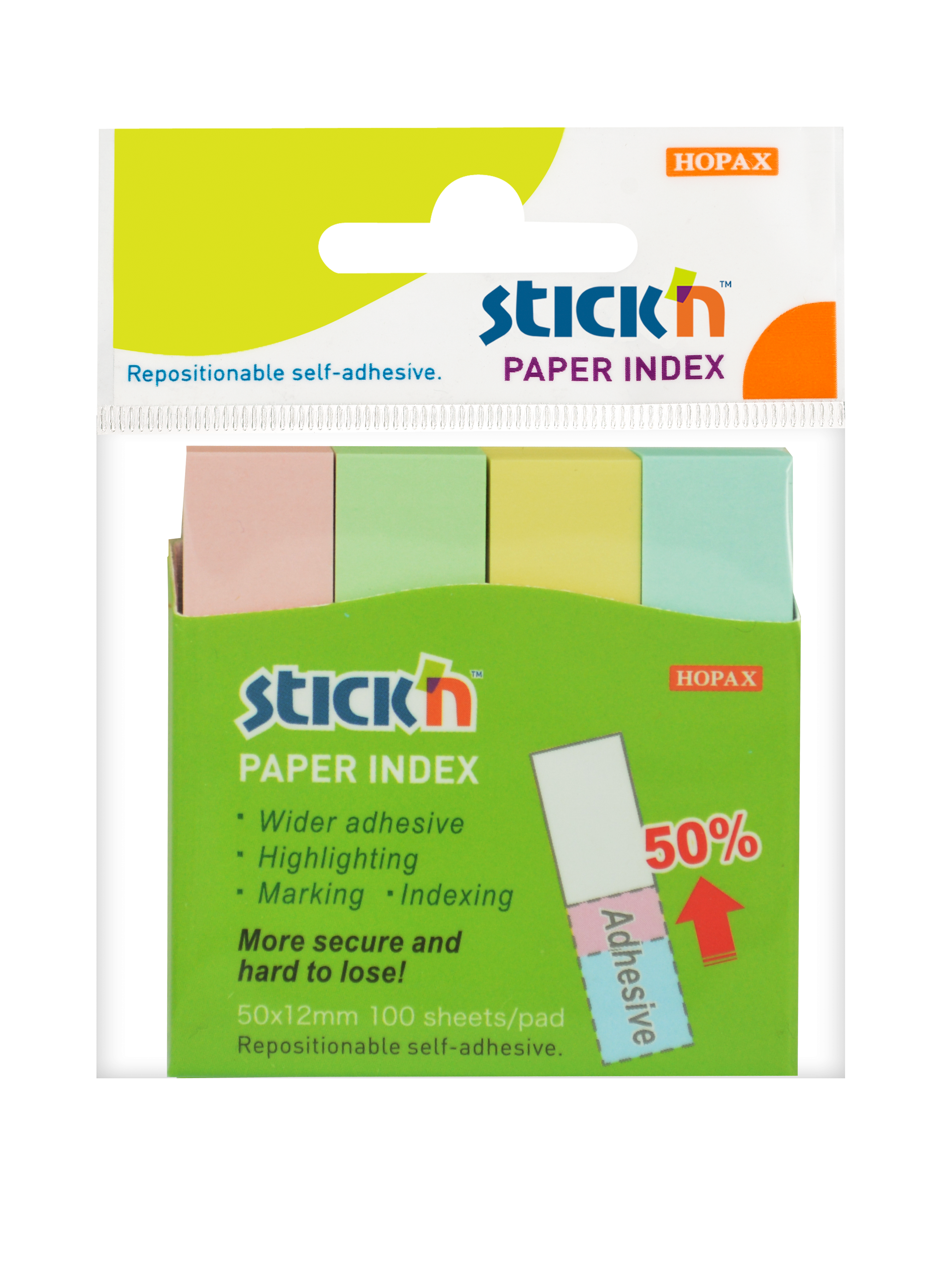 Samolepicí papírové záložky Stick'n by Hopax, 50 x 12 mm, pastel mix, 4 x 100 lístků