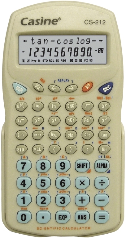 Casine CS 212 je opravdu velice výkonný vědecký kalkulátor. Plastové tělo kalkulátor je opatřeno ochranným krytem, 10+2místným dvouřádkovým displejem, plastovou klávesnicí pro dlouhou životnost a automatickým vypnutím. Obsahuje 229 funkcí včetně výpočtu zlomků, převod z desetinného tvaru na zlomky a obráceně, procentové výpočty, trigonometrické a inversní trigonometrické funkce, hyperbolické a inversní hyperbolické funkce, převod úhlových jednotek, dekadické a přirozené logaritmy a antilogaritmy, mocniny, odmocniny, převrácené hodnoty, faktoriály, konverze souřadnic, permutace, kombinace, statistické výpočty.