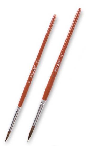 Kvalitní štětce MILAN na výtvarnou výchovu. Štětce mají bezešvou hliníkovou zděř, dlouhou násadku lakovanou v barvě přírodní borovice. Kulaté štětce jsou vyrobeny z vlasu pony a ploché štětce z prasečí štětiny.