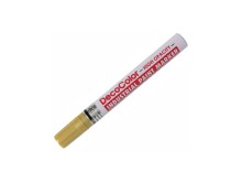Lakový popisovač MARVY, je vybaven odolným kulatým hrotem, zlatým inkoustem a stopou šíře 2-4 mm. Voděodolný, neprůhledný, velmi dobře kryje. Uvnitř fixu se nachází kovová kulička, která promíchá barvu a zamezuje jejímu vyschnutí. Vhodný pro průmyslové použití a na většinu povrchů jako jsou dřevo, sklo, plast, kov, papír nebo porcelán.