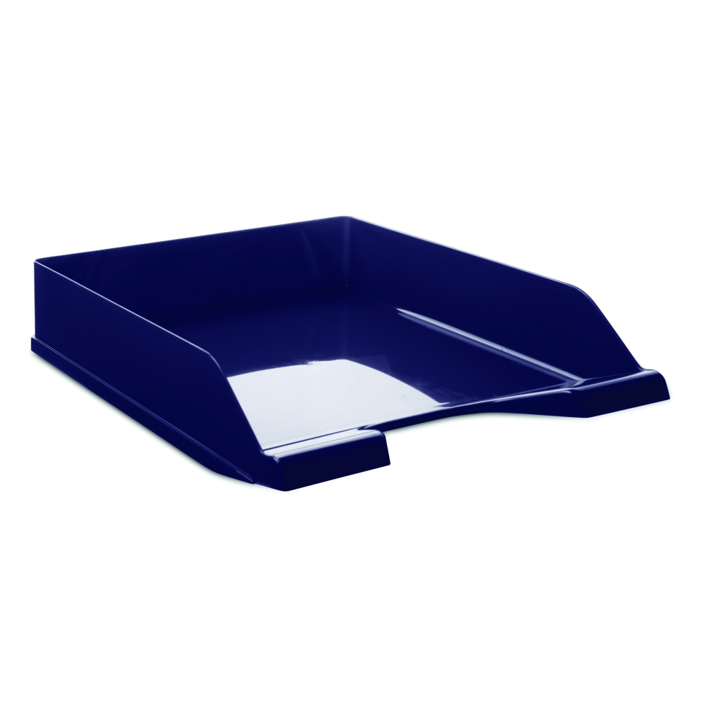 Pevný kancelářský odkladač pro organizaci dokumentů do formátu A4. Vyrobený z odolné kombinace polystyrenu a polypropylen - nárazu odolný, masivní. Snadné stohování na sebe nebo pomocí praktických zarážek kaskádově. Vnější rozměry: 254 x 60 x 346 mm, vnitřní rozměry: 244 x 43 x 325 mm. Barva: tmavě modrá.
