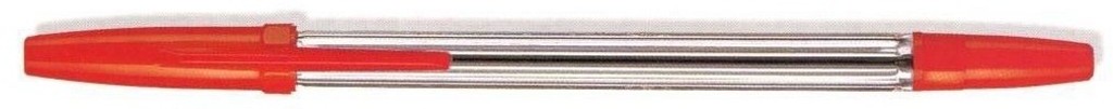 Jednorázové kuličkové pero, šíře stopy 1,0 mm, plastové průhledné tělo s doplňky v barvě náplně. Barva náplně: červená..