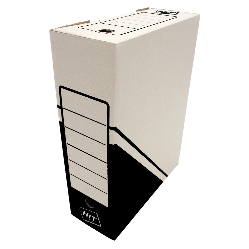 Pro ukládání dokumentů do formátu A4. Provedení lesklý karton s barevným potiskem, barva: černá. Šetrné k přírodě. Archivační krabice je ideální dále skladovat v archivačním kontejnéru HIT. Balení 20 ks. Na obsah pořadače.
