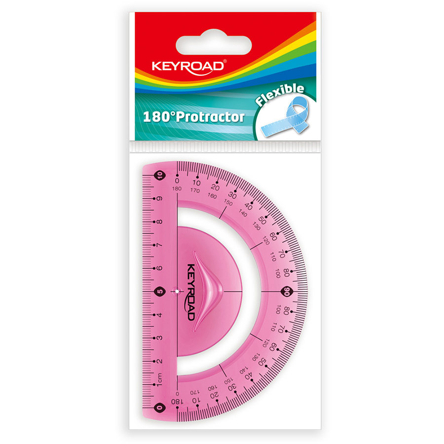 Ohebný transparentní úhloměr vyrobený z polymeru s vysokou mechanickou odolností. Pro snadnější manipulaci je tělo úhloměru prolisováno. Dodáváno v závěsu. Asort 3 barev.