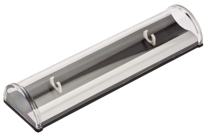 Dárkové pouzdro na 1 tužku, spodní část černý plast, vrchní půlkruhové transparentní víčko.