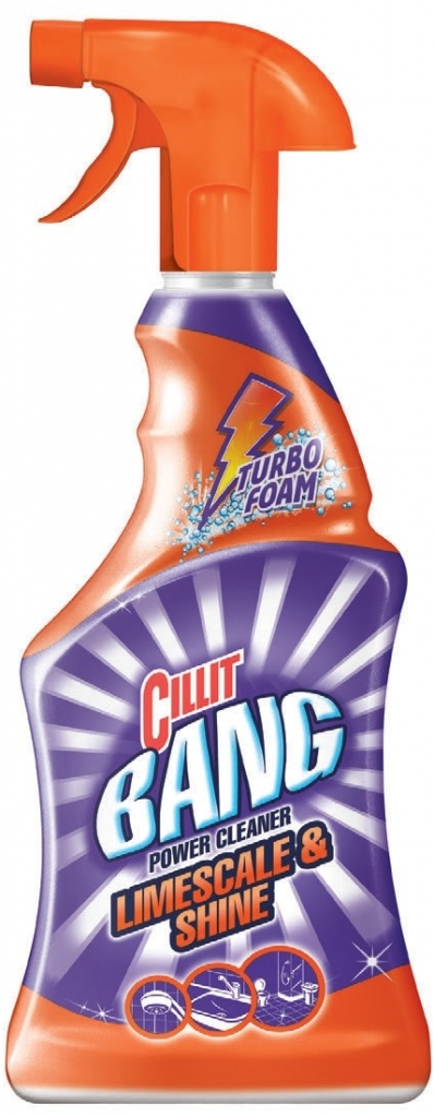 Nový Cillit Bang proti vodnímu kameni a pro větší lesk s novým složením Turbo Power působí již za několik vteřin. Prostředek účinně odstraňuje vodní kámen, zbytky mýdla, rez a špínu. Bang. A špína zmizí.