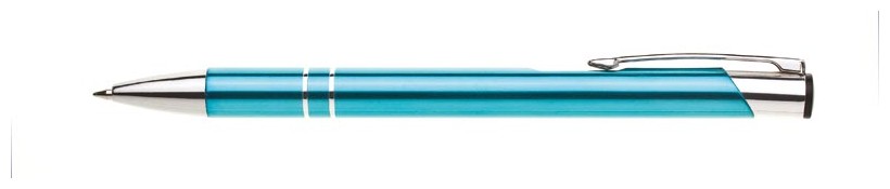ORIN je velmi oblíbená hliníková reklamní tužka. Lesklé, aquamarine tělo se dvěma stříbrnými proužky a chromovými doplňky.