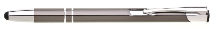 Šedá varianta oblíbené propisky ORIN, tentokrát s ukončením TOUCH. Lesklé tělo se dvěma stříbrnými proužky a stříbrnými doplňky.