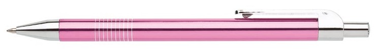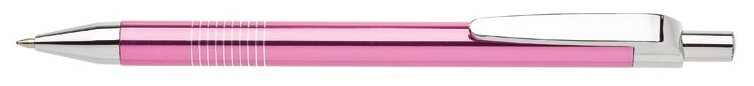 Kuličkové pero LAURIA je vyrobeno z hliníku. Má růžové tělo se stříbrnými doplňky jako jsou špička, klip a cvakátko. Úchopová část má 10 stříbrných proužků po celém obvodu tužky. Náplň- X20, modře píšící.