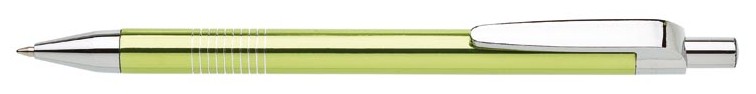 Kuličkové pero LAURIA je vyrobeno z hliníku. Má světle zelené tělo se stříbrnými doplňky jako jsou špička, klip a cvakátko. Úchopová část má 10 stříbrných proužků po celém obvodu tužky. Náplň- X20, modře píšící.