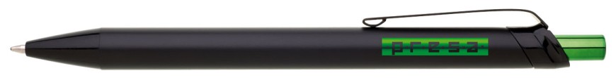 Kovová černá propiska s metalicky zeleným cvakátkem. Netradiční na této propisce je laser, který je zeleně lesklý. Vyniká zde zejména inverzní zpracování loga. Náplň velkoobsahová, modře píšící.