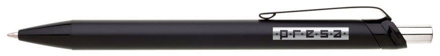 Kovová černá propiska s metalicky stříbrným cvakátkem. Netradiční na této propisce je laser, který je stříbrně lesklý. Vyniká zde zejména inverzní zpracování loga. Náplň velkoobsahová, modře píšící.