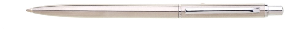Tenká klasická propiska stainless steell se stiskacím mechanismem. Náplň velkoobsahová, modře píšící.