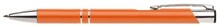Plastové propisovací pero OIRA - oranžové . Pero je zdobené dvěma stříbrnými proužky. Na těle je zdobeno oválným výřezem. Pero má náplň velkoobsahovou, modře píšící.